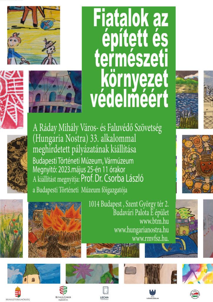 A Fiatalok az Épített és Természeti Környezet Védelméért kiállítás megnyitására 2023. május 25., 11:00 órakor kerül sor a Budapesti Történeti Múzeumban (1014 Budapest, Szent György tér 2., Budavári Palota E épület).